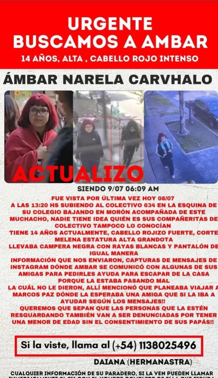 Morón Desesperada búsqueda de una adolescente de 14 años desaparecida en... Alerta Oeste 10/07/2025 La adolescente fue vista bajar de un colectivo en Morón acompañada de un hombre no identificado. Su familia pide ayuda...