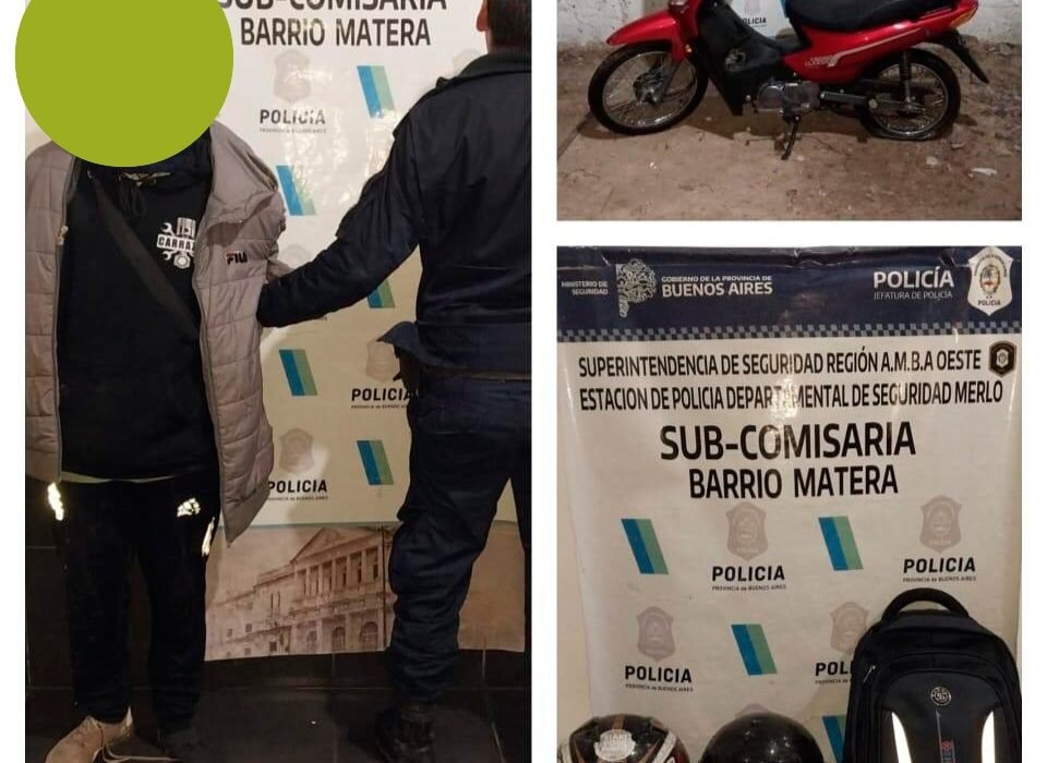 Los efectivos aprehendieron a un joven de 19 años que iba a bordo de una moto Keller roja que había sido robada hace cinco días, en jurisdicción de la comisaría 4ta. de Merlo.