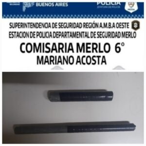 Dos motochorros de 21 y 35 años detenidos cuando circulaban con una moto robada que fue reconocida por su dueño en un barrio de la localidad bonaerense de Mariano Acosta, partido de Merlo, se incautó en la requisa un arma tipo tumbera de fabricación cacera, un machete, informaron fuentes policiales.