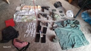Durante el allanamiento de la vivienda utilizada como refugio, los agentes hallaron dos pistolas Bersa, una de ellas con numeración suprimida, municiones, ocho cámaras de seguridad conectadas a un sistema DVR, teléfonos celulares, anotaciones con presuntos registros de ventas, y una importante cantidad de drogas fraccionadas para la comercialización, máscaras, riñoneras y vestimenta de gendarmes, lo que pudo saber Alerta Oeste.