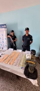 Uno de los detenidos llevaba consigo una pistola Bersa calibre 9 milímetros cargada y lista para usar, junto con una credencial de Gendarmería Nacional, dinero en efectivo, un teléfono celular y una pequeña cantidad de cocaína.
