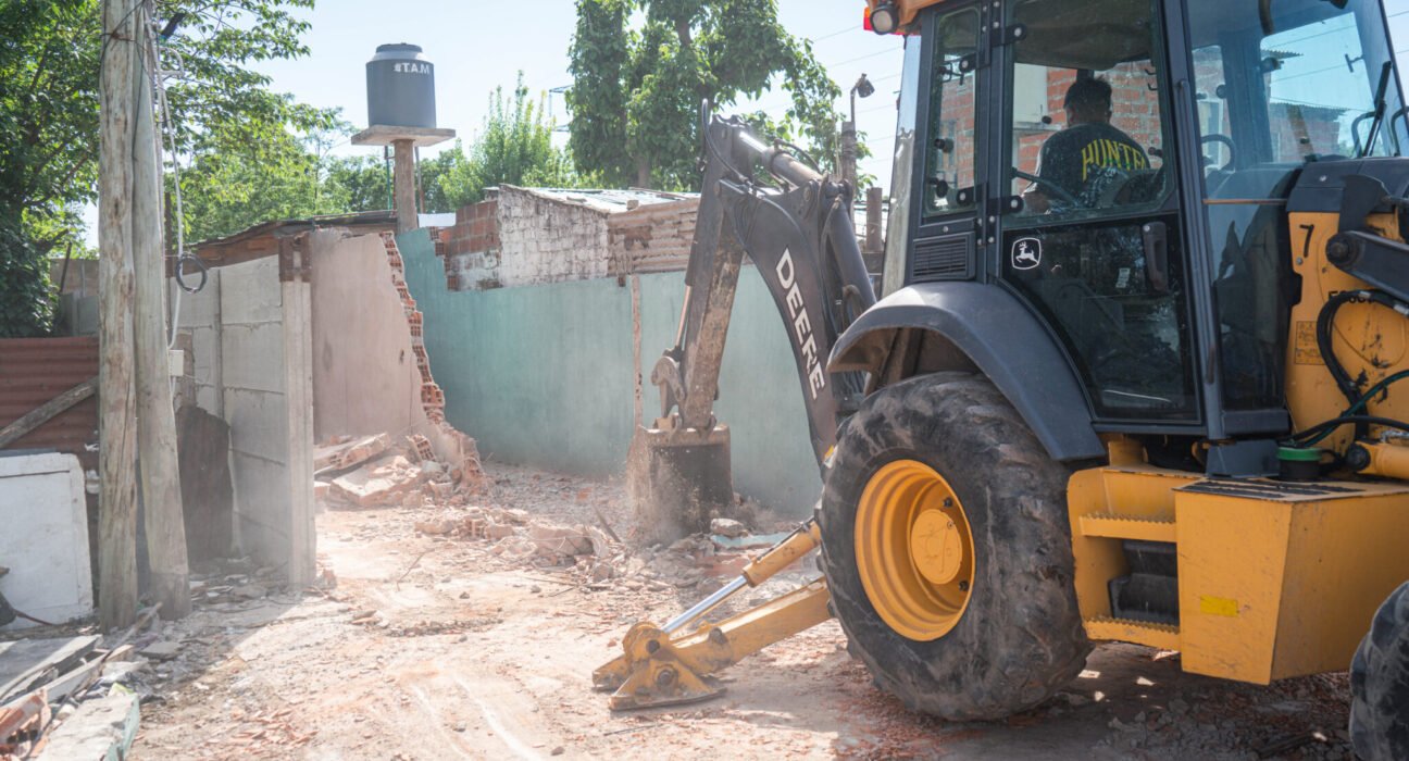 Durante el procedimiento se derribó un inmueble ubicado en la calle Pedro Benoit, entre Lincoln y Euskadi que era utilizado como punto de venta de drogas, amplía la información.