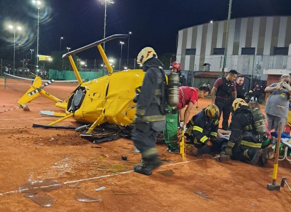 De acuerdo con lo informado por los voceros de la policía, el helicóptero se precipitó “a raíz de un desperfecto técnico”, y quedó destruido al caer sobre una de las canchas de tenis.