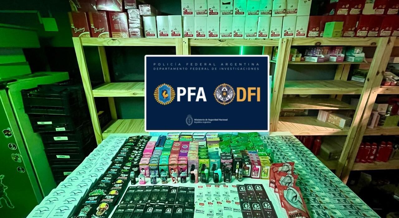 La información agrega que el procedimiento se enmarca en una investigación por la presunta comercialización ilegal de productos con THC y nicotina, que incluía la fabricación, distribución y venta a través de puntos de expendio físicos y redes de distribución interprovinciales.