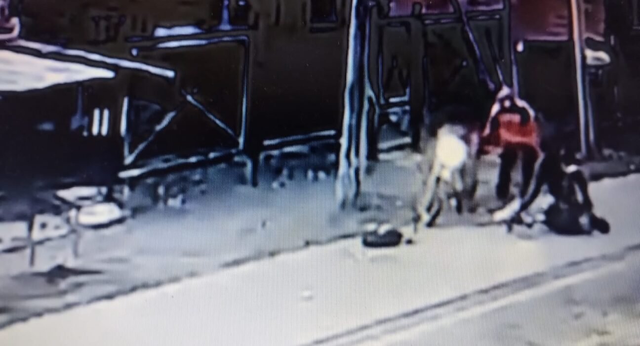 El video de una cámara de seguridad vecinal muestra cuando la pareja circula en su moto y son abordado por los motochorros, uno se bajó y con un arma en mano le apuntaba a la cabeza al novio de la mujer policía.